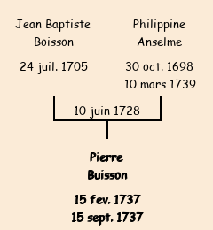Père : Jean Baptiste Buisson | Parrain : Pierre Collet (fils de Jean Baptiste) |
