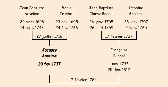 Marié (26 ans) avec Françoise Bonnel (28 ans) le 7 février 1764 à Saint-Jean-de-Maurienne |