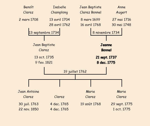Jean Baptiste Claraz Bonnel (°1699 +1768) - 38 ans |