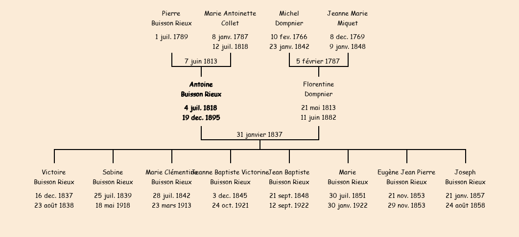 Epoux : Antoine Buisson Rieux, fils de Pierre et de feue Marie Antoinette Collet |