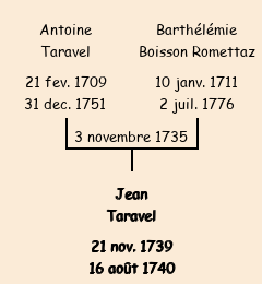 Mère : Barthélémie Romettaz | Marraine : Marie Taravel (fille de Pierre décédé) |