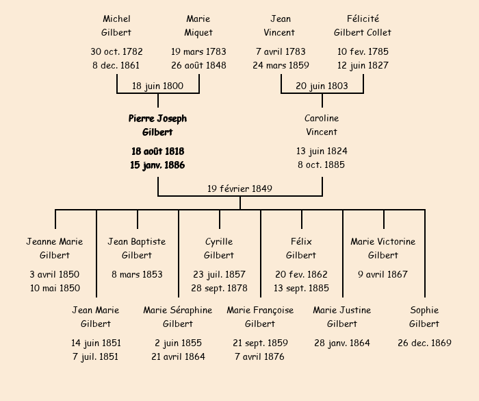 Pierre Joseph Gilbert apparait dans le dénombrement de la population de 1881. |