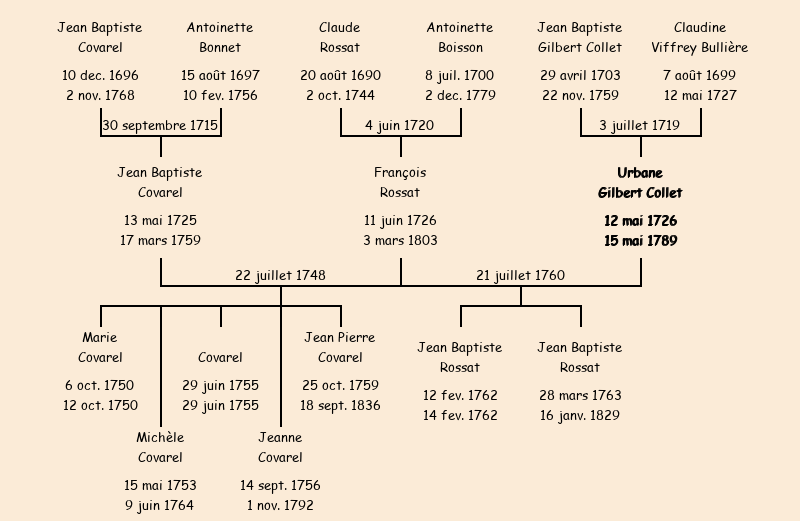 Mère : Claudine Viffrey Bullière | Marraine : Urbaine Gilbert Collet (fille de Jean) |