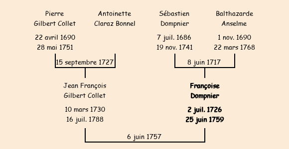 Mariée (30 ans) avec Jean François Gilbert Collet (27 ans) le 6 juin 1757 à Fontcouverte ![]() |