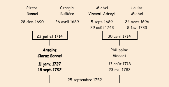 Père : Pierre Claraz Bonnel | Parrain : Antoine Claraz Bonnel (fils de Jean François décédé) |