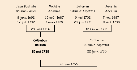Marié (28 ans) avec Catherine Sibué d'Alpettaz (26 ans) le 28 juin 1756 à Fontcouverte ![]() |