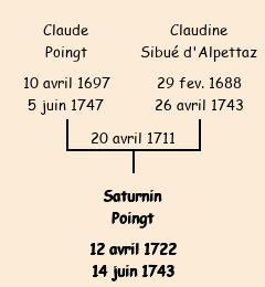 Père : Claude Poingt | Parrain : Saturnin Sibué d'Alpettaz (fils de Jean, frère de la marraine) |