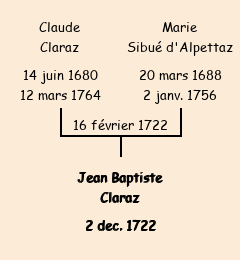 Père : Claude Claraz | Parrain : Jean Baptiste Sibué d'Alpettaz |