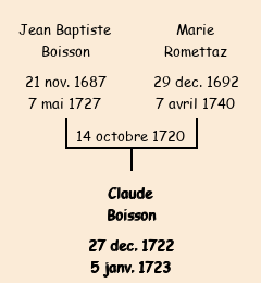 Père : Jean Baptiste Boisson | Parrain : Claude Boisson Romettaz |
