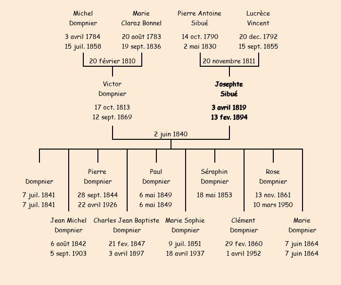 Mariée (21 ans) avec Victor Dompnier (26 ans) le 2 juin 1840 à Fontcouverte ![]() |