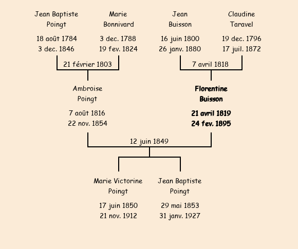 Epoux : Ambroise Poingt (33 ans, a marqué), fils de feu Jean Baptiste et de feue Marie Bonnivard |