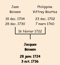 Mère : Pilippine Viffrey Bouttaz | Marraine : Claudine Anselme (épouse de Jean Baptiste Boisson) |