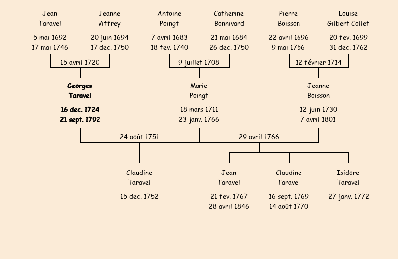 Epoux : Georges Taravel (veuf de Marie Poingt), fils de feu Jean |