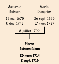 Père : Saturnin Boisson Rieux | Parrain : Pierre Truchet (fils de Michel décédé) |