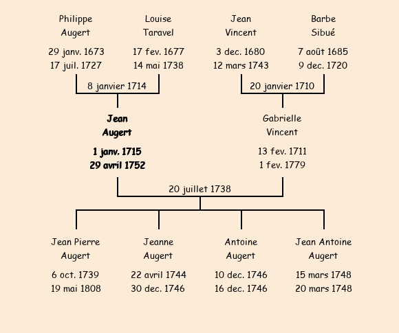 Père : Philippe Augert | Parrain : Ambroise Augert (fils du dit Philippe) |