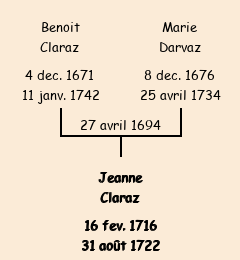 Jeanne Claraz apparait dans le recensement de la population de 1716. |