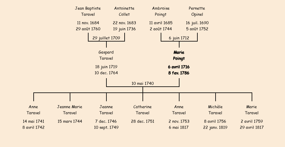 Epoux : Gaspard Taravel, fils de Jean Baptiste |