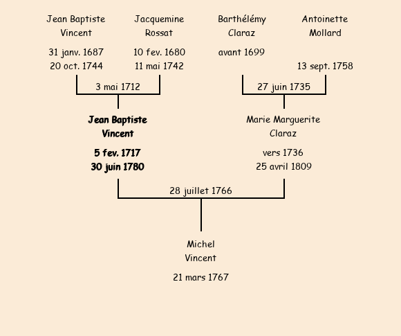 Epoux : Jean Baptiste Vincent (veuf de Marie Claraz), fils de feu Jean Baptiste |