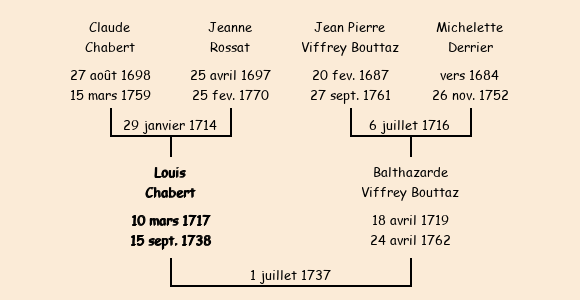 Marié (20 ans) avec Balthazarde Viffrey Bouttaz (18 ans) le 1 juillet 1737 à Fontcouverte ![]() |