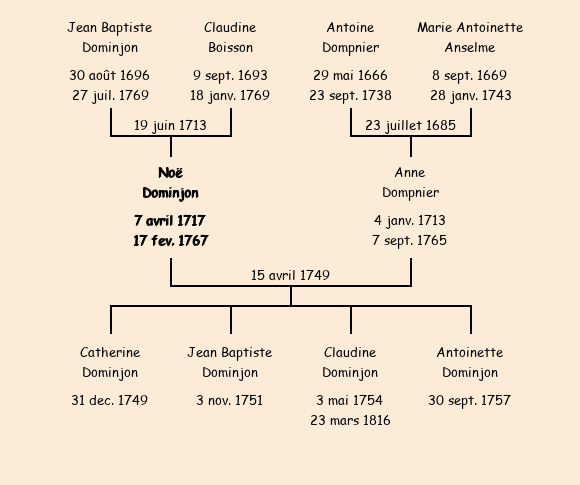 Père : Jean Baptiste Domenjon | Parrain : Noël Dominjon (fils d'Antoine) |