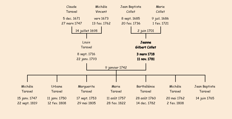 Jeanne Gilbert Collet apparait dans la consigne du sel pour l'année 1759. |