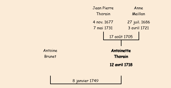 Antoinette Thorain apparait dans le recensement des personnes de Fontcouverte et de leurs bestiaux de 1734 (absente). |
