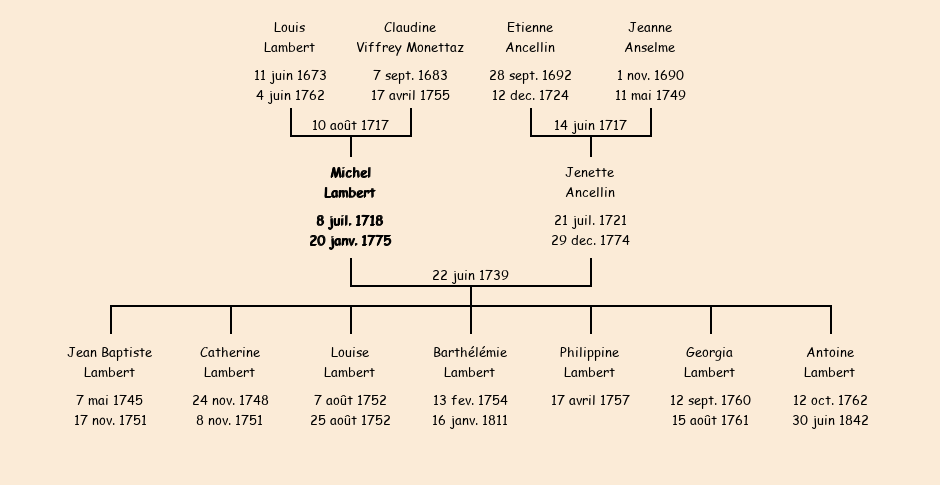 Mère : Claudine Viffrey Monettaz | Marraine : Michelette Lambert (fille du dit Louis) |