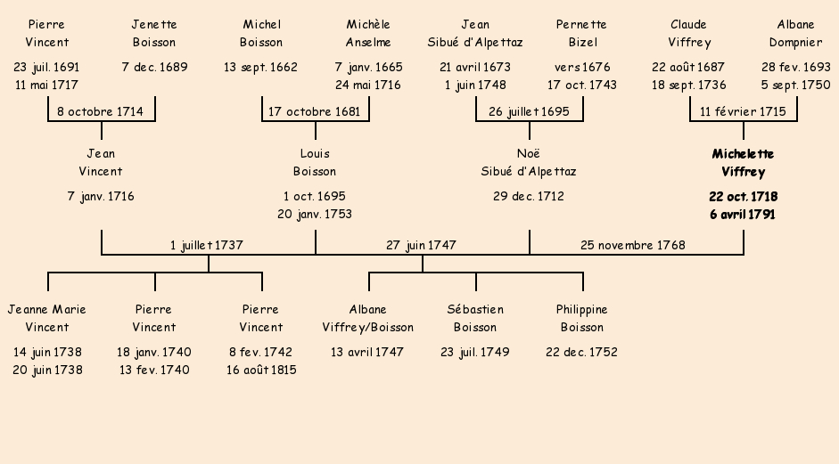 Epouse : Michelette Viffrey (veuve de Louis Boisson) |