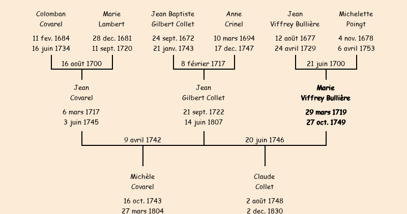Epouse : Marie Bullière (veuve de Jean Covarel, habitant La Chambre depuis quelques années), fille de feu Jean |