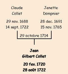 Mère : Jenette Dompnier | Marraine : Antoinette Gilbert Collet (fille de Sébastien, soeur du parrain) |