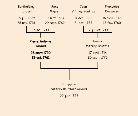 Père : Barthélémy Taravel | Parrain : Pierre Antoine Augert (fils de Philippe) |