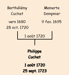 Père : Barthélémy Cuchet | Parrain : Philippe Dompnier (fils de Jean Baptiste décédé) |
