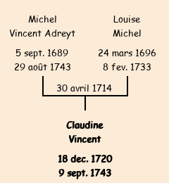 Claudine Vincent apparait dans la consigne du sel pour l'année 1734. |