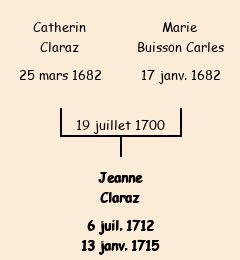 Mère : Marie Boisson Carles | Marraine : Jeanne Rossat (fille de Claude décédé, soeur du parrain) |