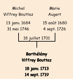 Barthélémy Viffrey Bouttaz apparait dans le recensement de la population de 1716. |
