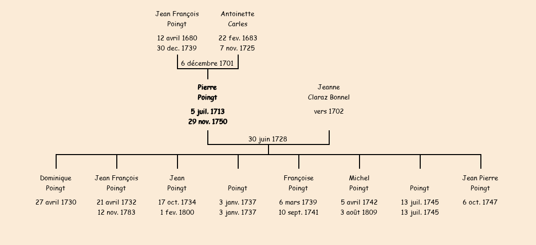 Père : Jean François Poingt | Parrain : Pierre Claraz Bonnel (fils de Jean François) |
