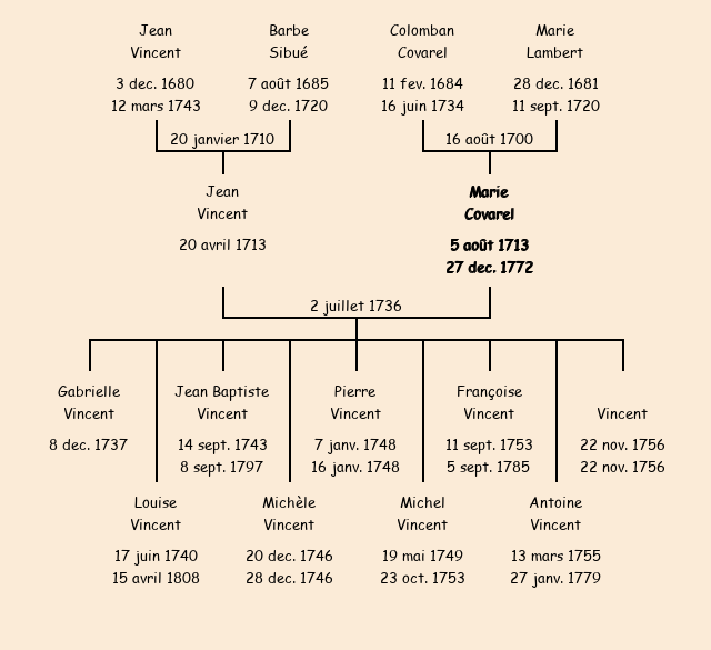 Marie Covarel apparait dans le recensement de la population de 1716. |