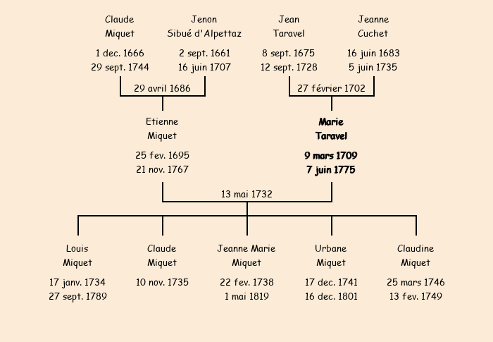 Mariée (23 ans) avec Etienne Miquet (37 ans) le 13 mai 1732 à Fontcouverte ![]() |