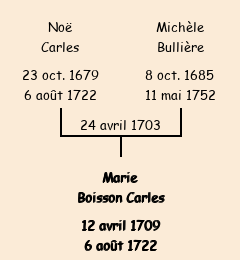 Père : Noë Boisson Carles (enterré le 6 août1722) |