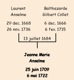 Mère : Balthazarde Gilbert Collet | Marraine : Jeanne Anselme (fille de Louis décédé) |
