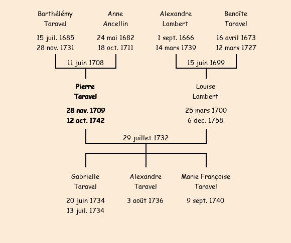 Mère : Anne Ancellin | Marraine : Louise Taravel (fille de Pierre décédé) |