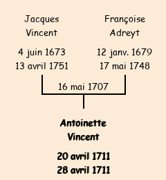 Mère : Françoise Vincent Adreyt | Marraine : Antoinette Vincent (fille de Jean) |