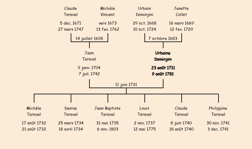 Urbaine Dominjon apparait dans le recensement de la population de 1716. |