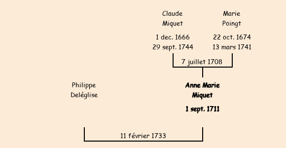 Anne Marie Miquet apparait dans le recensement de la population de 1716. |