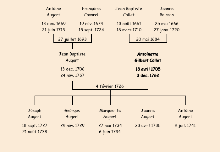 Antoinette Gilbert Collet apparait dans le recensement de la population de 1716. |