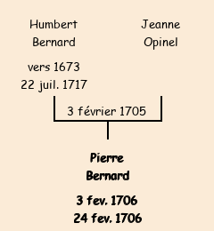 Père : Humbert Bernard | Parrain : Pierre Opinel (fils de Félix décédé, d'Albiez le Vieux) |
