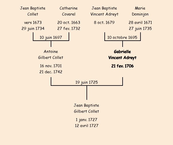 Epoux : Antoine Gilbert Collet, fils de feu Jean Baptiste |