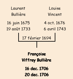 Mère : Louise Vincent Adreyt | Marraine : Françoise Gilbert Collet (épouse de Jean Viffrey Bullière) |