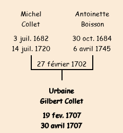 Père : Michel Gilbert Collet | Parrain : Jean Baptiste Boisson (fils de Jean Baptiste décédé, a signé) |
