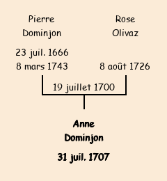 Anne Dominjon apparait dans le recensement de la population de 1716. |